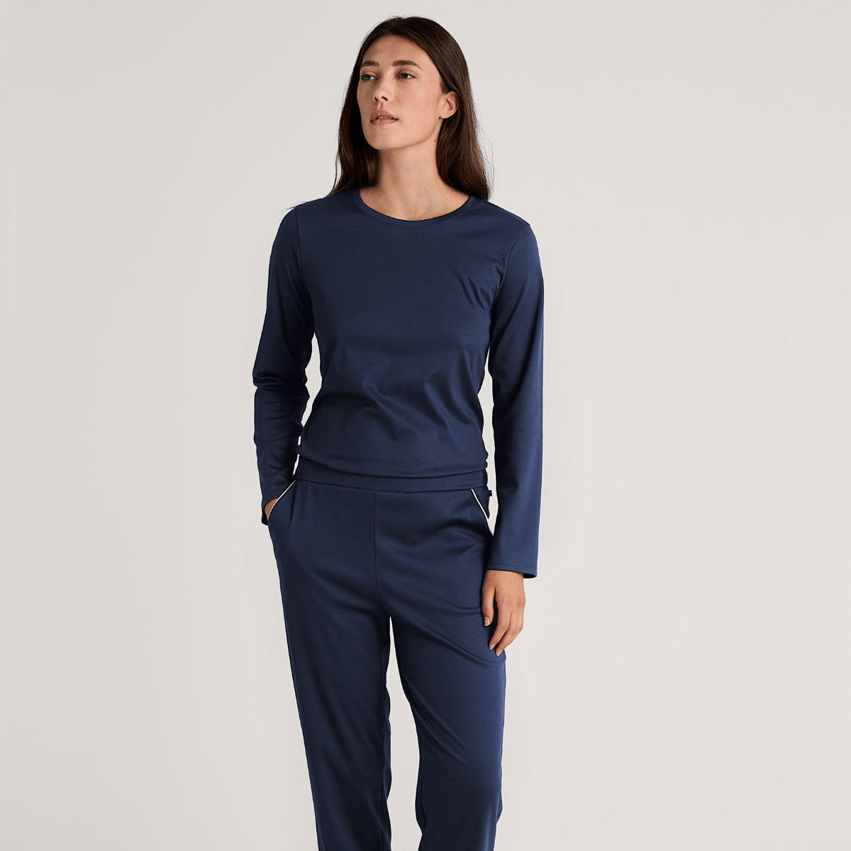 Que vous optiez pour un haut de pyjama court en jersey ou un modèle long en modal, vous faites preuve de considération. Pas seulement pour votre confort, mais aussi pour votre identité. Le haut de pyjama rappelle que le style ne s’arrête pas avec la fin de la journée. Il se prolonge – discrètement mais résolument – dans l’obscurité.