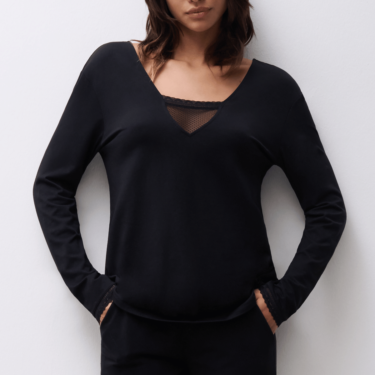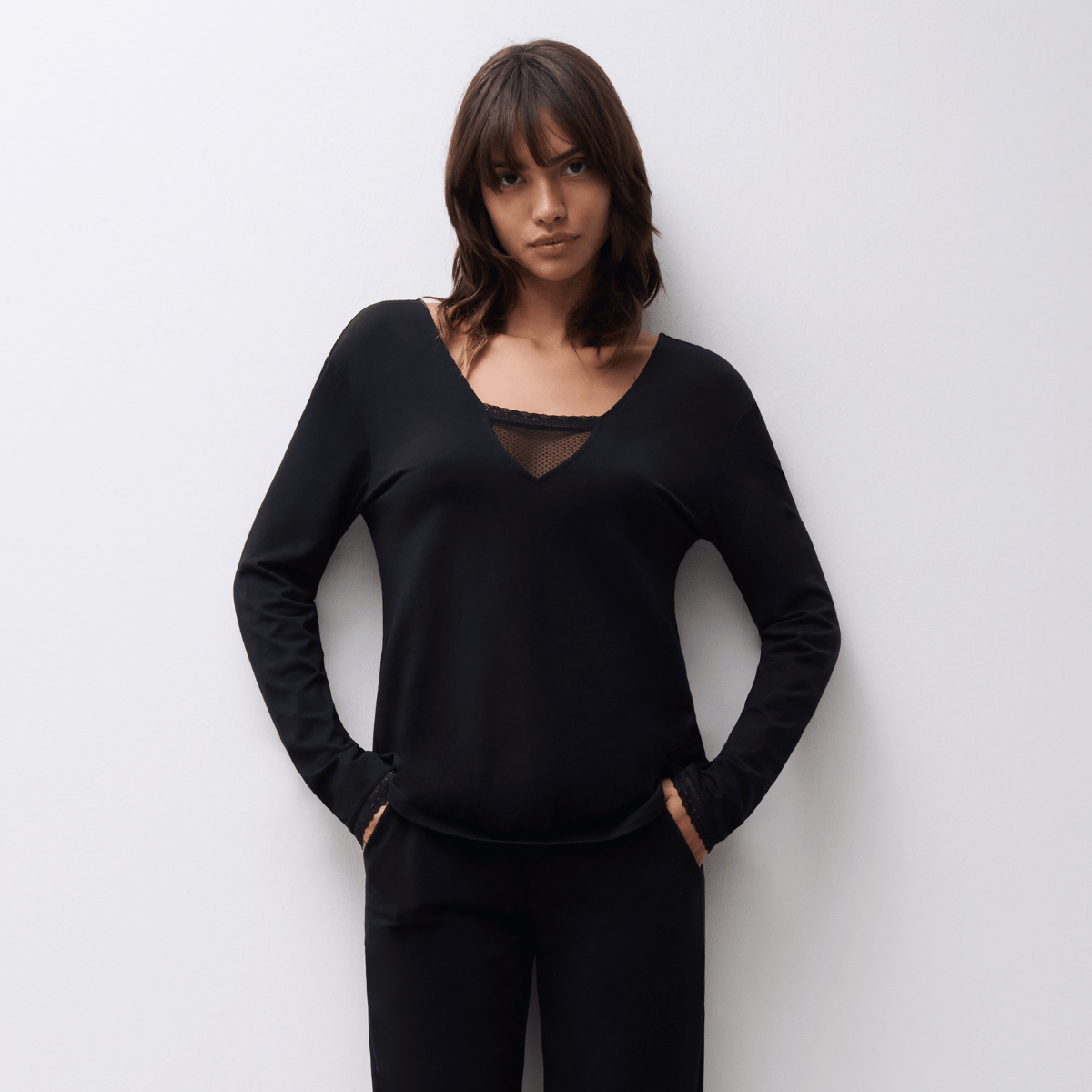 Un haut de pyjama ne doit pas seulement être en coton doux ou en viscose résistante. Il doit aussi refléter le sens du détail – qu’il s’agisse d’un petit volant discret, d’un drapé flatteur sur les hanches ou d’une longueur de manche tombant exactement là où il faut.